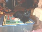 Here's an old photo of Tim & I taken 20 years ago at the university. I should be that thin today. The other 2 are Pipers playing Sorry last night w/my niece and I. Pipers didn't win, but she did take control of the board!
