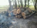 Pictures of today's accomplishments!!!  That is a cord and a half or so of wood, bring on the splitter and it's all out of the way!!!  Then I push mowed the lawn I'm sure much to the chagrin of the neighbors .. LOL .. it was pretty early I was trying to get done before the heat come up.  And that is the last of the burn pile.  It is awesome to have that back area all cleaned up I'm telling you .. that is something that has been in process of over a year now .. so the fact it's ALL done is HUGE!!!!!