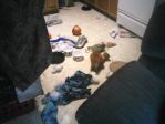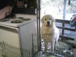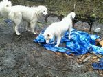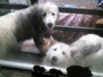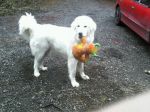 After another thing of some idiot on my property....I got a guard dog. well puppy, 10 mo. Akbash and Great Pyr. HUGE, I mean tall as a great dane and wide. HUGE big white guy. divorce situation, wife would not let husband have him. she left him outside alone from 11 weeks to 9 months. horrible as he is a HUGE puppy with no training. He is doing sooo much better now.