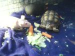 Prudi my potted pig always sleeps with me now, under the covers of course. Be nice in winter. She is so soft and warm. Glory loves Prudie, if she things pru is in danger she starts freaking, running all over hollering. She leans way down to Pru and rubs her face on her. Glory also kisses me now and rubs on me. talks to me all the time. I grab her tail and won't let go to play with her.