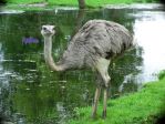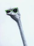 I couldn't find a pic with one wearing a bikini or sunglasses, but I found this one near the water. There's an ostrich farm not far from here, I should go visit and see if I can have them put sunglasses on one of them, LOL!