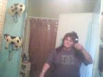 yea I could not find my brushes. lol me in my baggy t shirt getting ready to paint. (c: