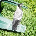 Anyway, being spring here, it's baby magpie season and the other day after some very strong winds, I was a little dismayed to discover that there was a baby in our backyard. It's not a great choice of venue since we have a very predatory cat and dog. The baby isn't even close to flying yet so he's actually stuck in the yard and the parents are trying very hard to prevent us from accessing the yard in their own special way (If you come out here I will dive-bomb you and I will drill a hole in your head with my beak).